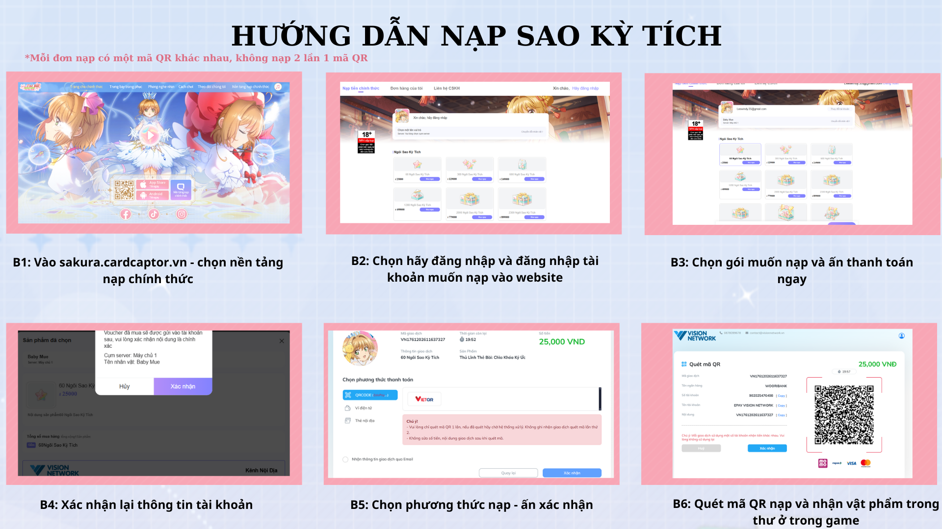 Mỗi đơn nạp có 1 mã QR khác nhau, không nạp 2 lần cùng mã.