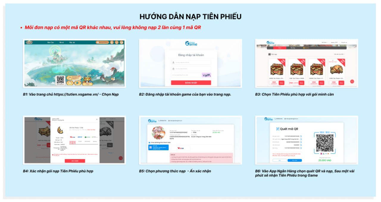 Mỗi đơn nạp có 1 mã QR khác nhau, không nạp 2 lần 1 mã tránh bị treo đơn nạp.